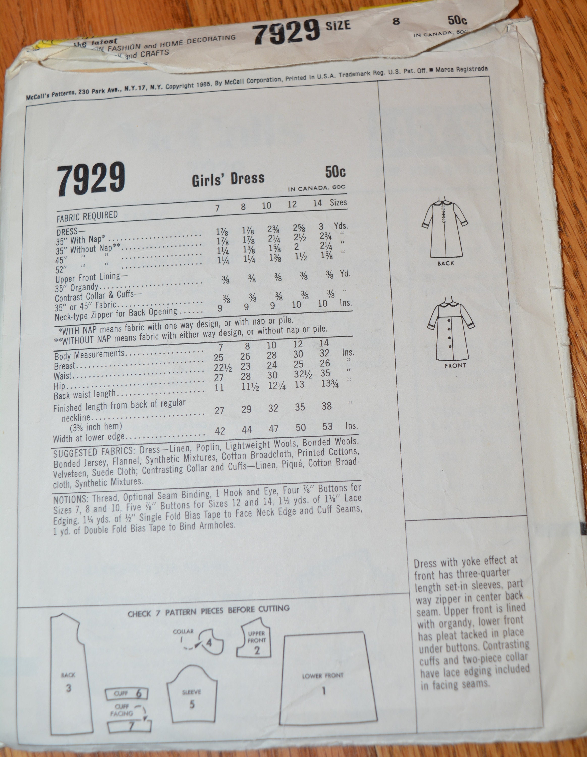 Vintage Mccall S 7929 Girls Dress Size 8 Etsy