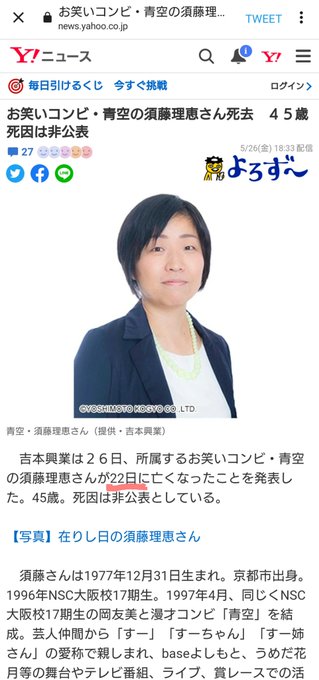 訃報 お笑いコンビ 青空 須藤理恵さん 45 死去 エンタメ 写真 Goo ニュース